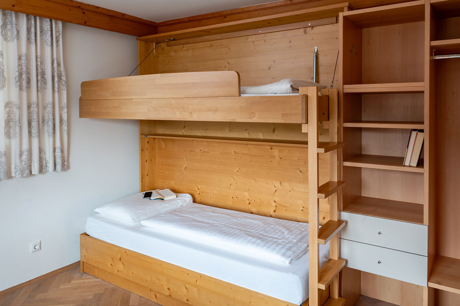 Im separaten Kinderzimmer warten gemütliche Stockbetten – ein echtes Highlight für die Kleinen. In ein, zwei Zimmern gibt es alternativ eine Ausziehmöglichkeit mit nebeneinanderliegenden Betten – ideal, wenn auch die Größeren mal kuscheln wollen.